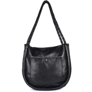 Portage Leather Crossbody Bag with Woven Strap in Black