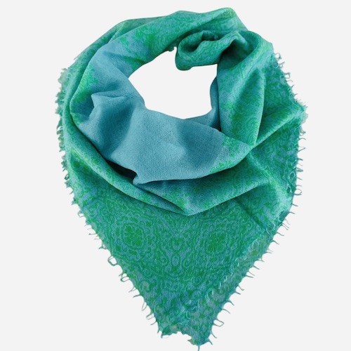 Cashmere Whisper Weight Paisley Bandana in Aqua/Lime