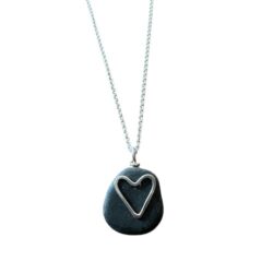 Found beach rock with hammered sterling silver heart on sterling silver chain with clasp handmade by Dina.